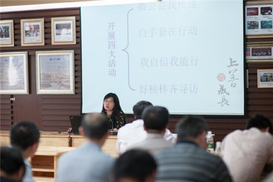 最后,我们聆听该校张倩副校长所做报告《微风化行,快乐成长——“上善微成长”德育教育的实践与思考》,张副校长全面地介绍了他们学校顺应“上善若水”的教育精神,开展“微成长”班会、社团校本课程、“2+1”班集体建设、家校共建联动、班级管理常规评比等活动,以微行动促成微变化,以微变化实现微成长。一个多小时的报告就在不知不觉中度过,不少老师听后表示我们两所学校历史有着惊人的相似,而每一步成长都是具体而微的,惟此,校园方能成为士之渊薮,道之渊薮。