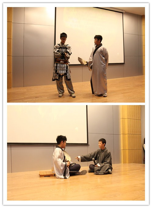 2013年5月27日下午,“与圣贤为友,与经典同行”国学课本剧表演赛在29中致远校区博远报告厅举行。初一年级同学经过半个多月的精心准备,为大家献上了一台精彩的国学课本剧,所有参加同学都以动人的声音、饱满的精神、丰富的情感诠释着读书中的所思所得,无论是大家熟知的《唐雎不辱使命》、《三顾茅庐》,还是抗击金兵名将岳飞的故事《精忠报国》都被同学们演绎得惟妙惟肖,栩栩如生。